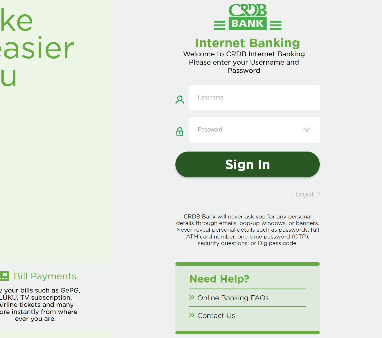 If you haven’t signed up yet, you can register at a CRDB branch or through available digital channels. You’ll receive instructions for setting up your username and password.