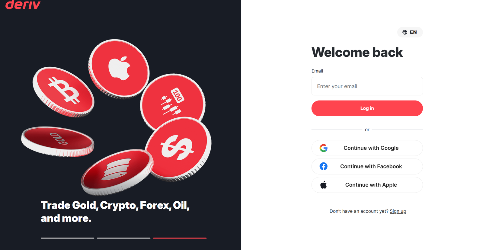 Before you start exploring the platform’s tools and services, you’ll need to sign in or set up a new account. The Deriv Login page is designed to be simple and fast so you can focus on what matters: trading and managing your account securely.