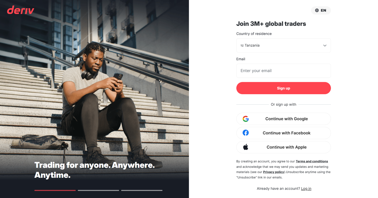 If you don’t have an account yet, the Deriv Login page doubles as the signup page. Here’s what you’ll need: