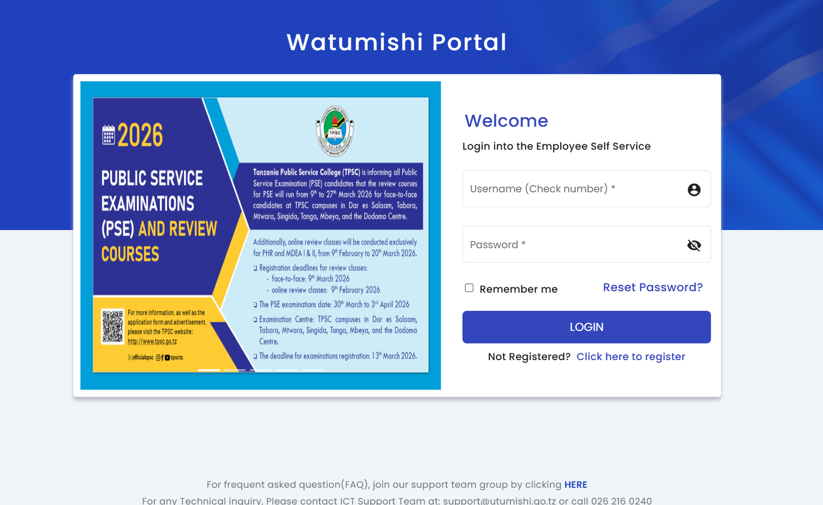 Need help? You can always reach ICT Support at support@utumishi.go.tz or call 026 216 0240.