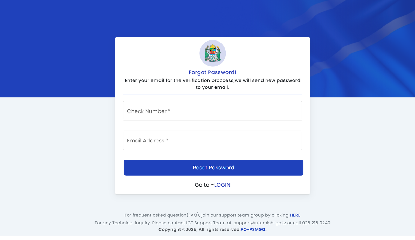The portal belongs to the United Republic of Tanzania, President’s Office – Public Service Management and Good Governance (PO-PSMGG).