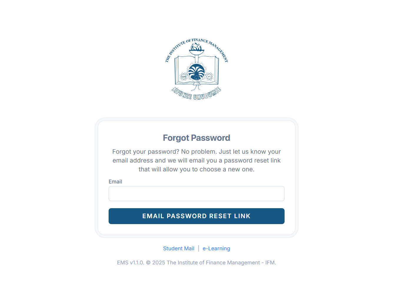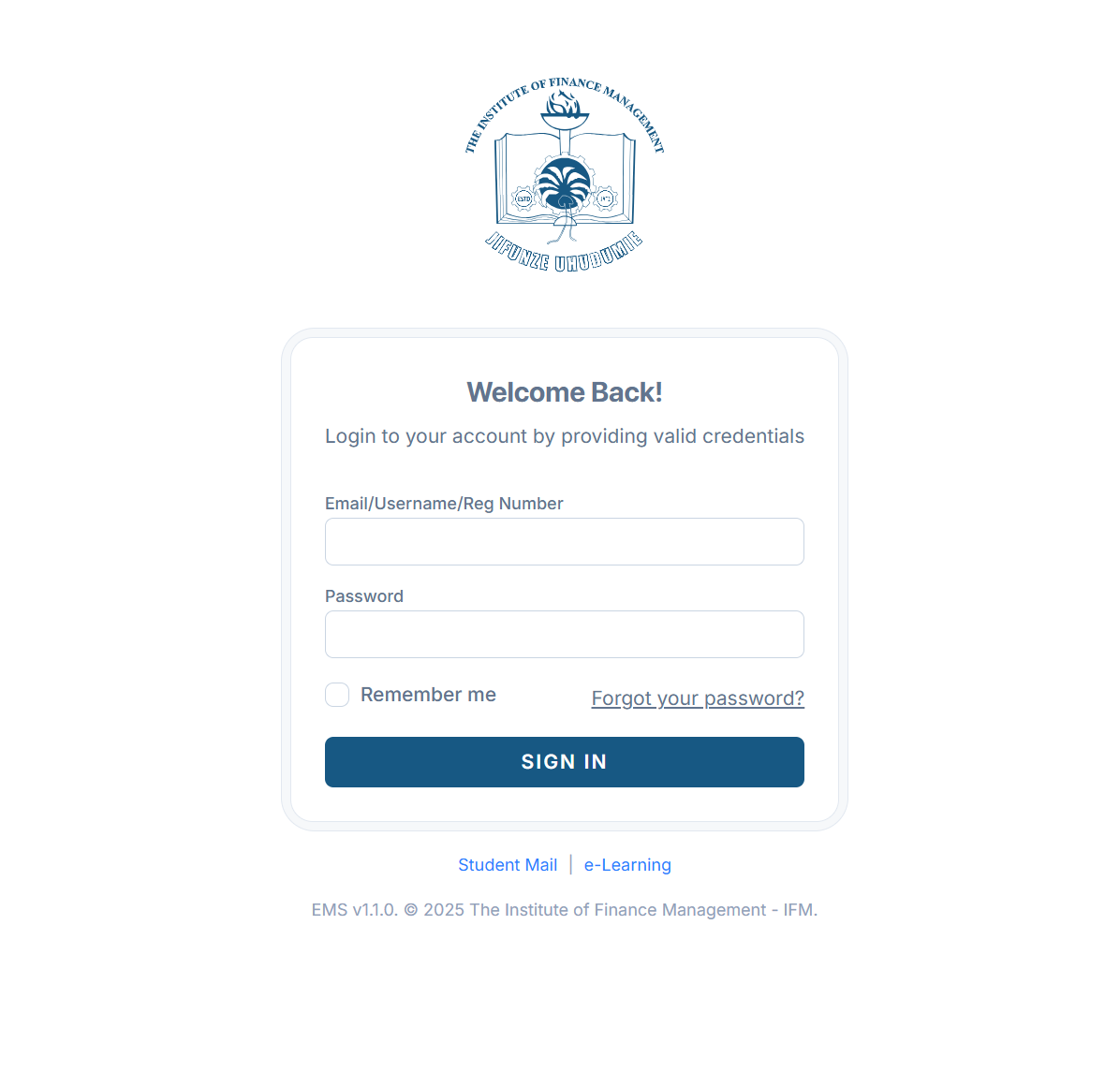 Ifm ems (EMS v1.1.0) is officially maintained by the Institute of Finance Management – IFM. The platform is updated periodically to improve security, usability, and access to services. If you experience technical issues, they are usually resolved through official IFM support channels.