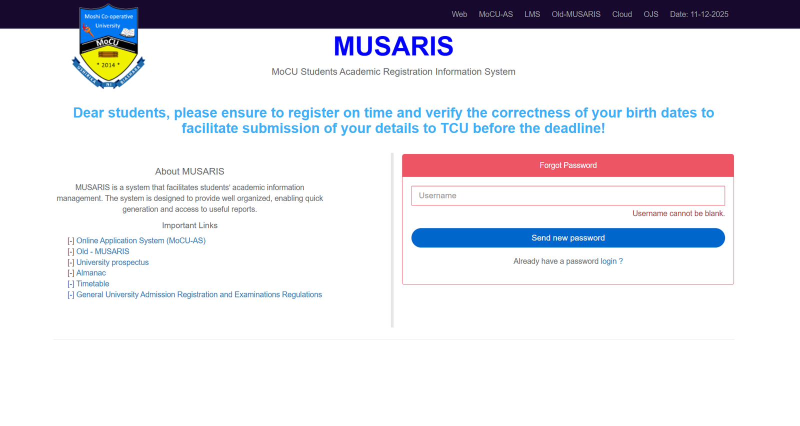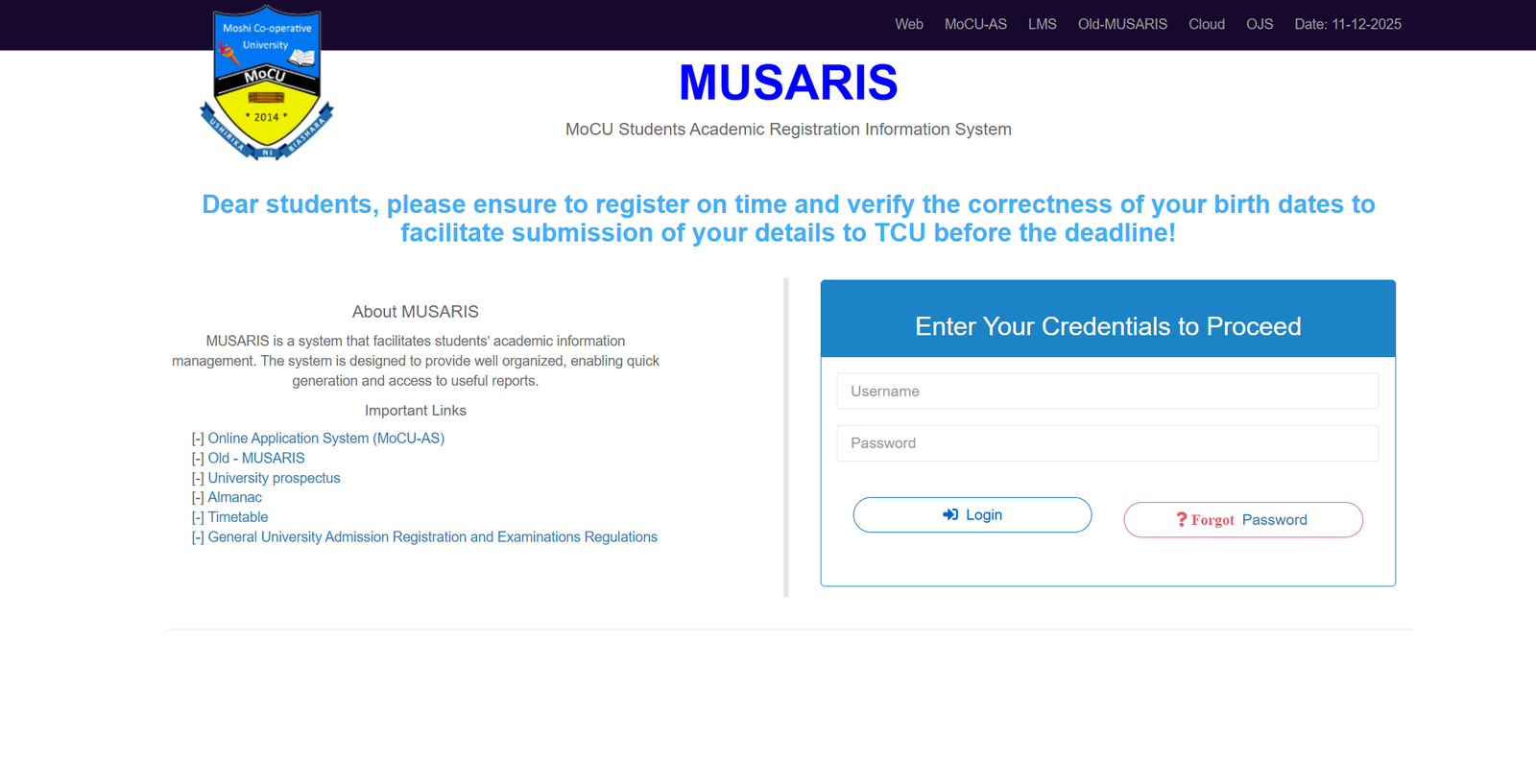If you’re a student at the Moshi Co-operative University (MoCU), the Musaris Login portal is one of the tools you’ll use most often. It’s the gateway to your academic records, course details, registration, and key university services. This guide walks you through how to use it confidently from signing in to managing your information—so you always know exactly where to go and what to do.
