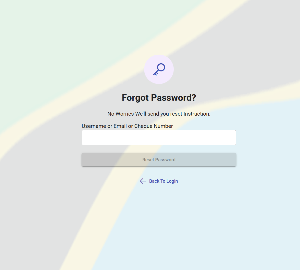 Use your username, email address, or cheque number, along with your password, to sign in. Make sure the details match those provided by your LGA or ICT support team.