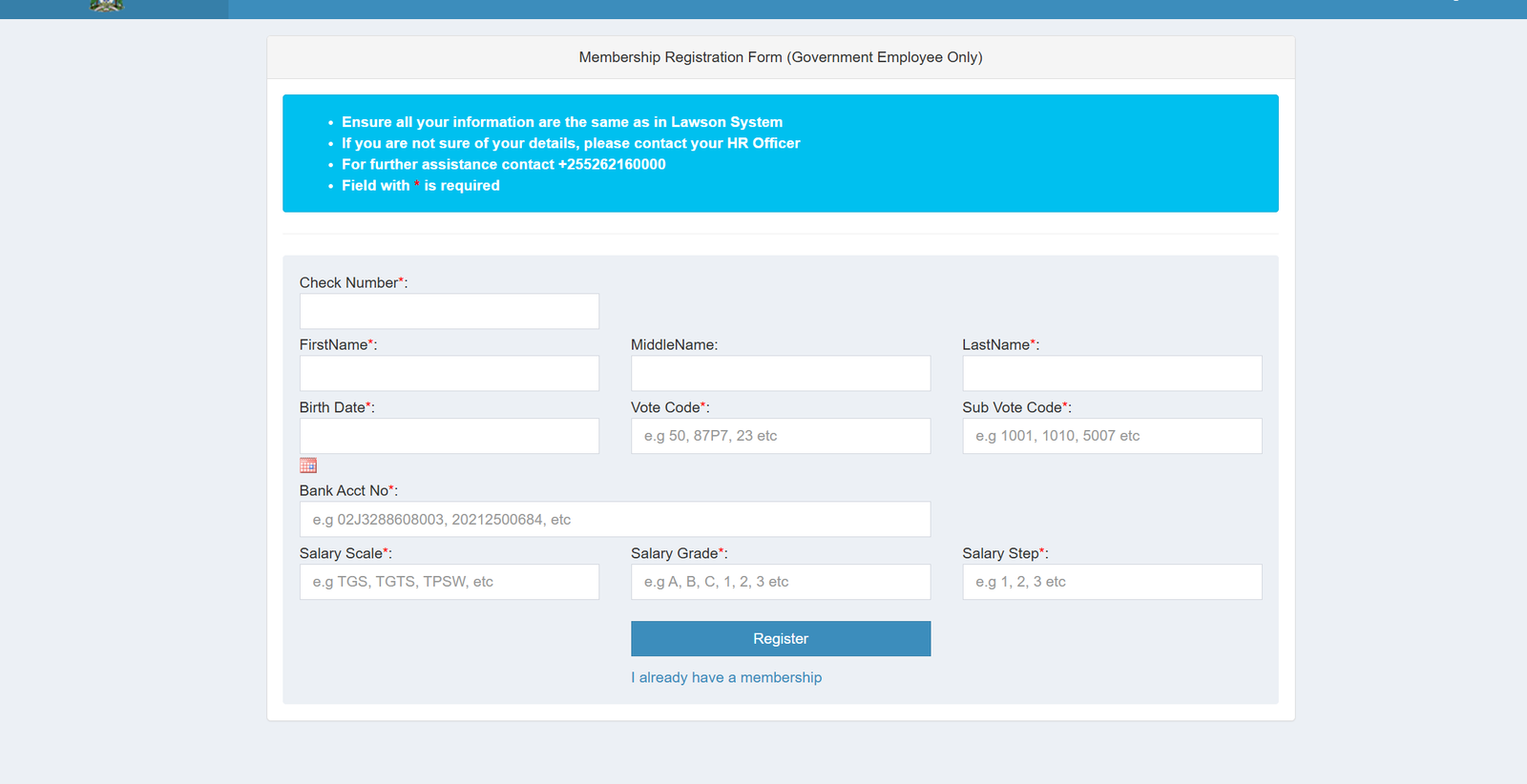 You’ll be taken to the Membership Registration Form, designed strictly for government employees.