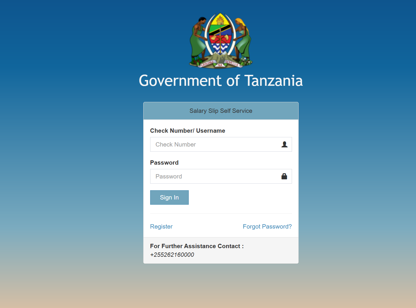 For assistance at any time, the portal provides a dedicated contact: +255 26 216 0000.
