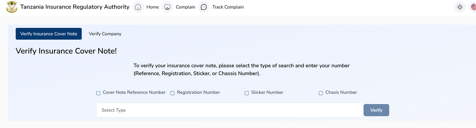 Enter the TIRA Registration Number and select Verify.